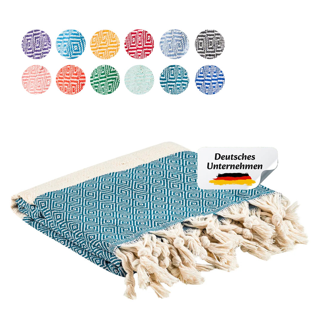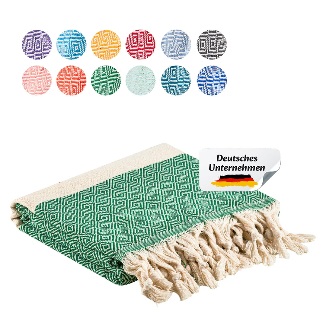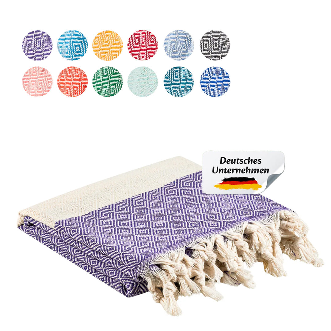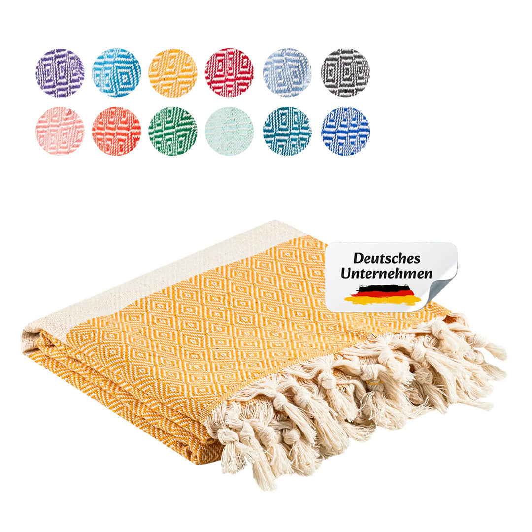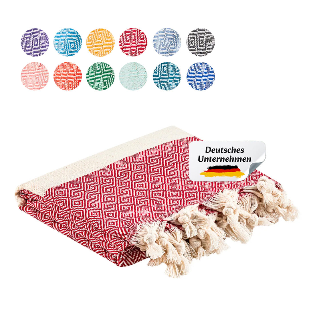 Unsere Strand- und Hamamtücher bestehen aus 100 % Baumwolle – das macht sie besonders angenehm auf der Haut, auch für empfindliche oder zu Allergien neigende Hauttypen.