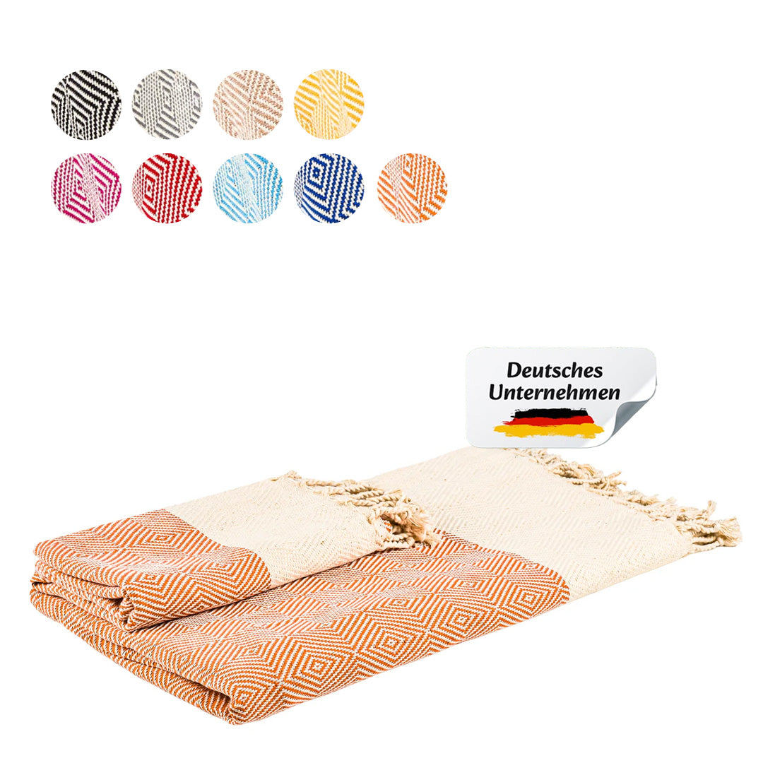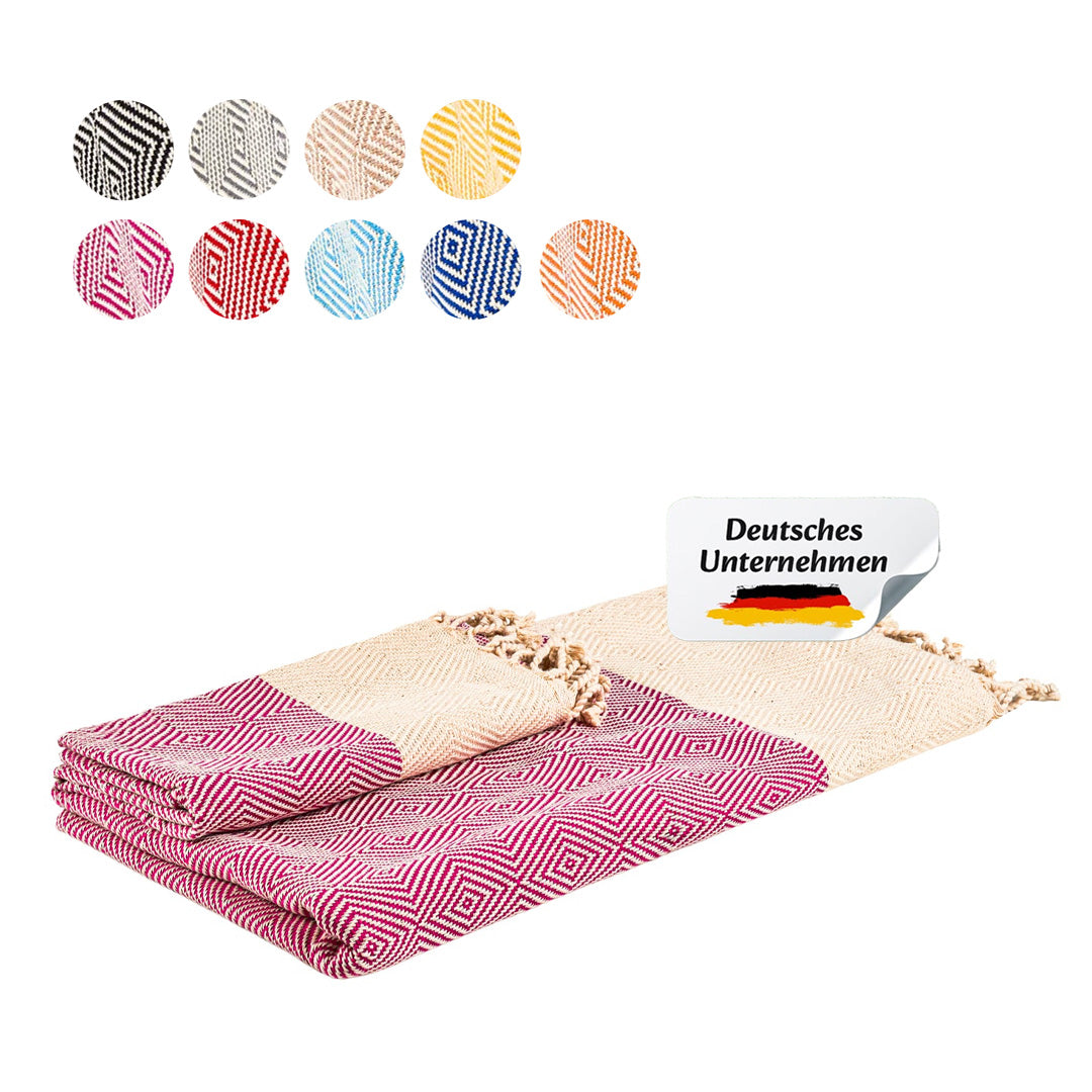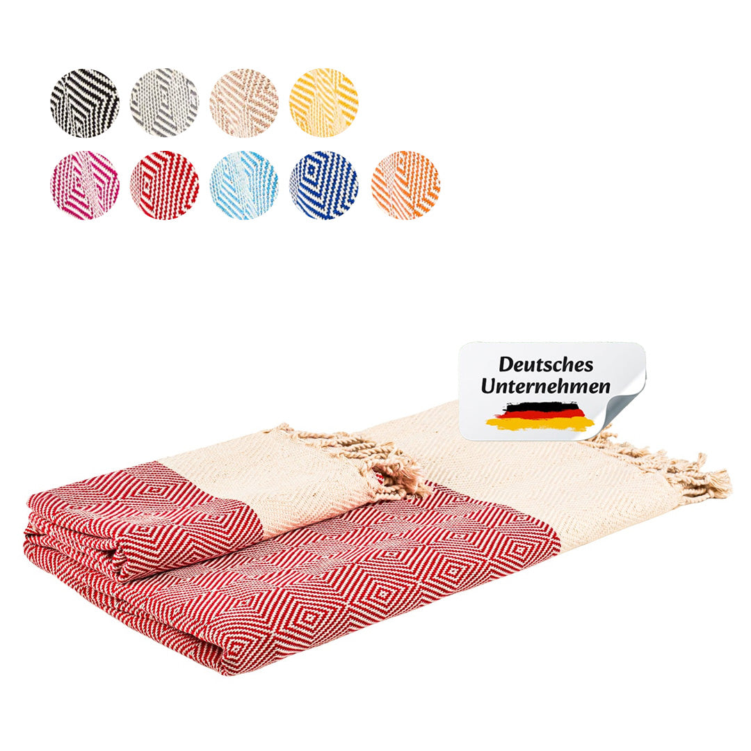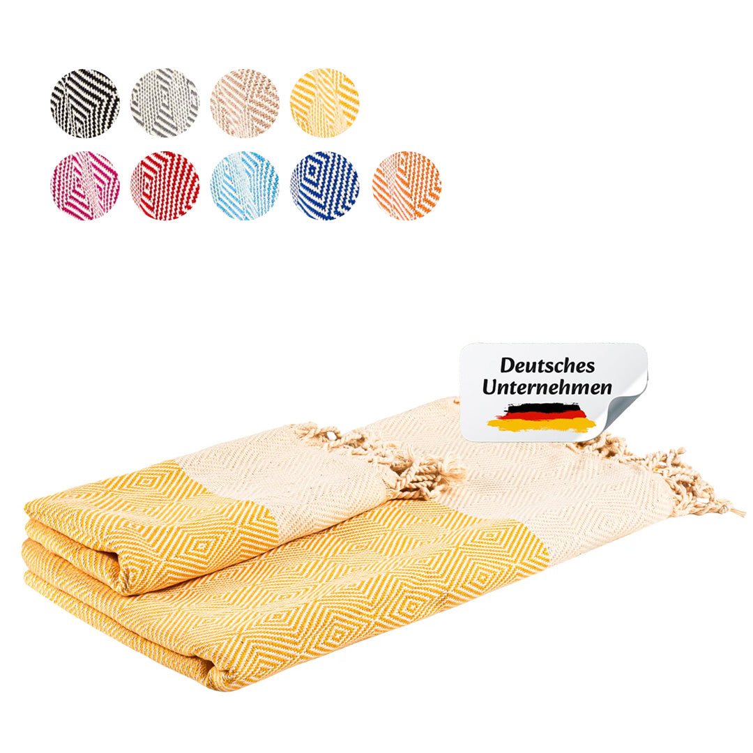 Unsere Strand- und Hamamtücher bestehen aus 100 % Baumwolle – das macht sie besonders angenehm auf der Haut, auch für empfindliche oder zu Allergien neigende Hauttypen.