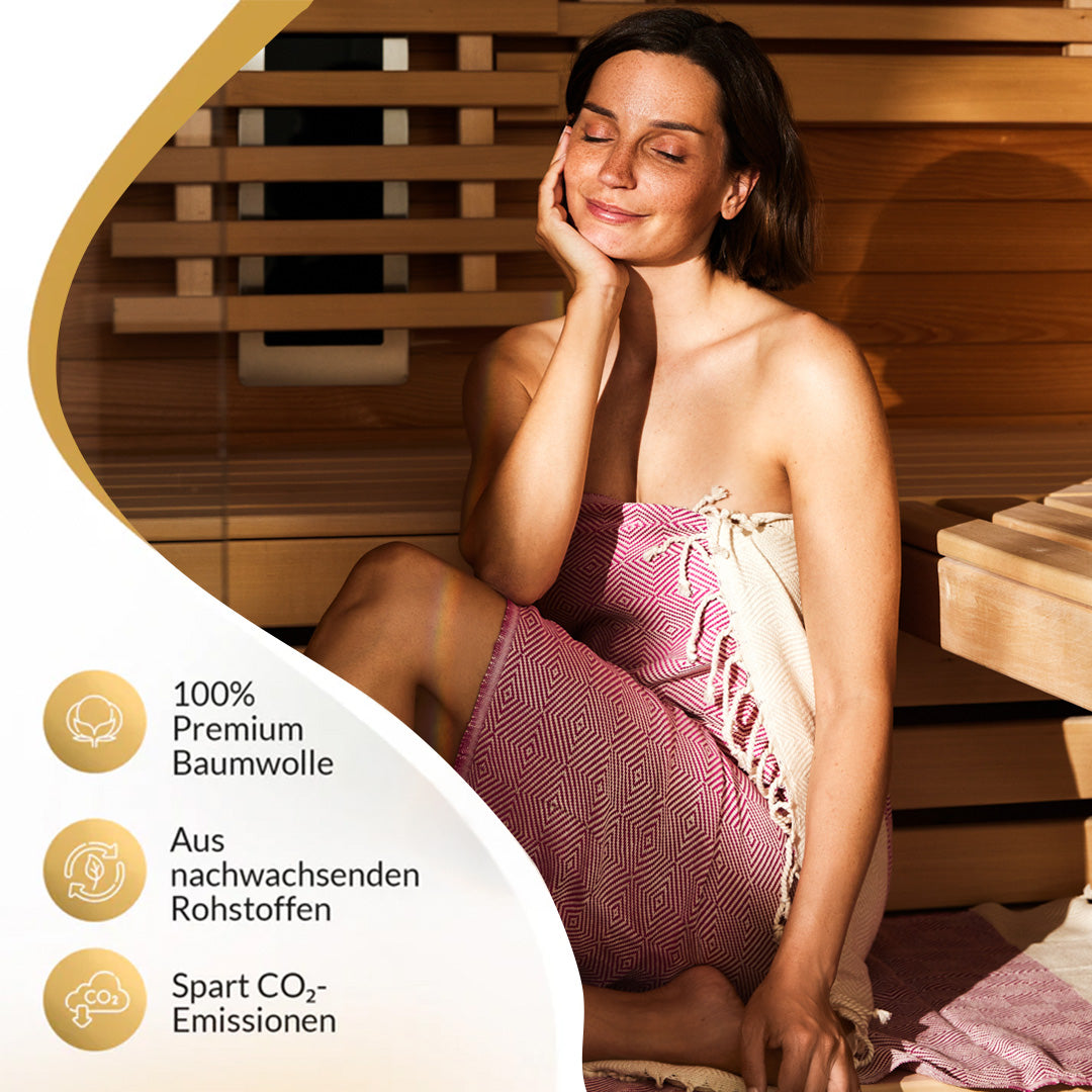 Unsere Tücher sind wahre Allrounder: Sie können als Saunatuch, Strandtuch, Picknickdecke, Schal, Pareo oder sogar als Hamamtuch genutzt werden. Ihre Multifunktionalität macht sie zum idealen Begleiter für jeden Tag.